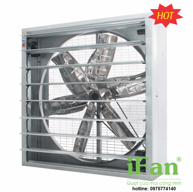 Quạt hút công nghiệp iFan-36C: Quạt hút công nghiệp iFan-36c motor gián tiếp quạt hút 900 được lắp đặt bên ngoài phân xưởng giúp loại bỏ các khí nặng mùi. Quạt thường được sử dụng trong các nhà máy nhiệt luyện, nhà máy đúc, nhà máy nhựa, các công ty may mặc