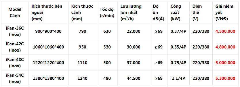 Thông số kỹ thuật quạt hút công nghiệp ifan